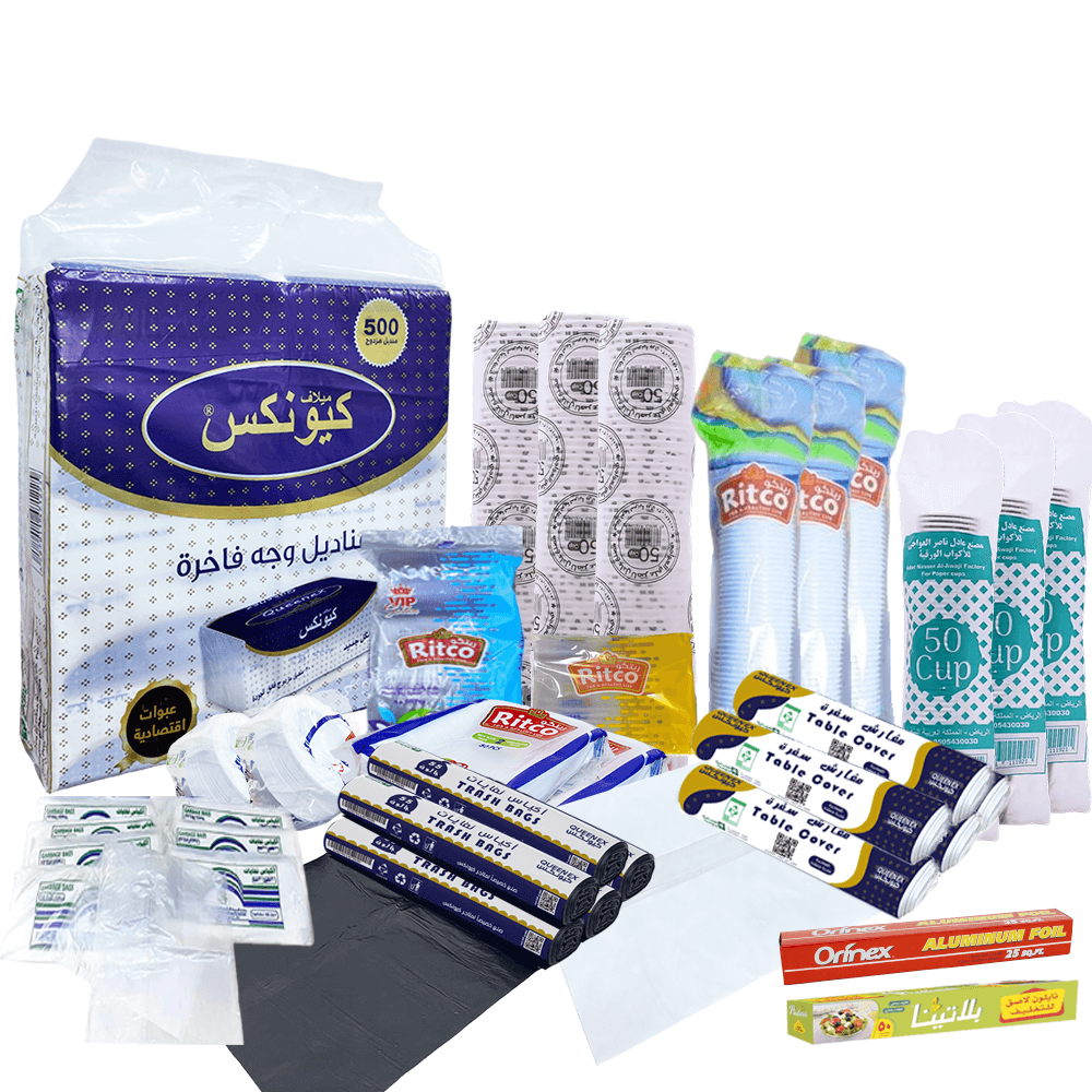 📦 المحتوى: 1000 قطعة من المستلزمات الأساسية للاستخدام اليومي، مثالي للعائلات، العزائم، والرحلات.