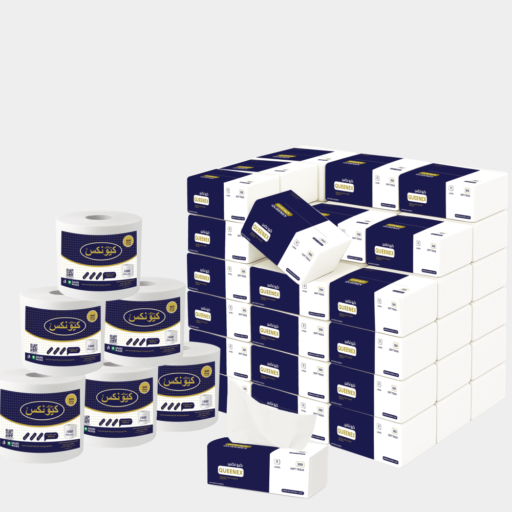 🧻 بكج التوفير الشامل – مناديل كيونكس + ماكس رول احصل على النظافة والأناقة في آنٍ واحد مع بكج العناية المنزلية المتكامل!
