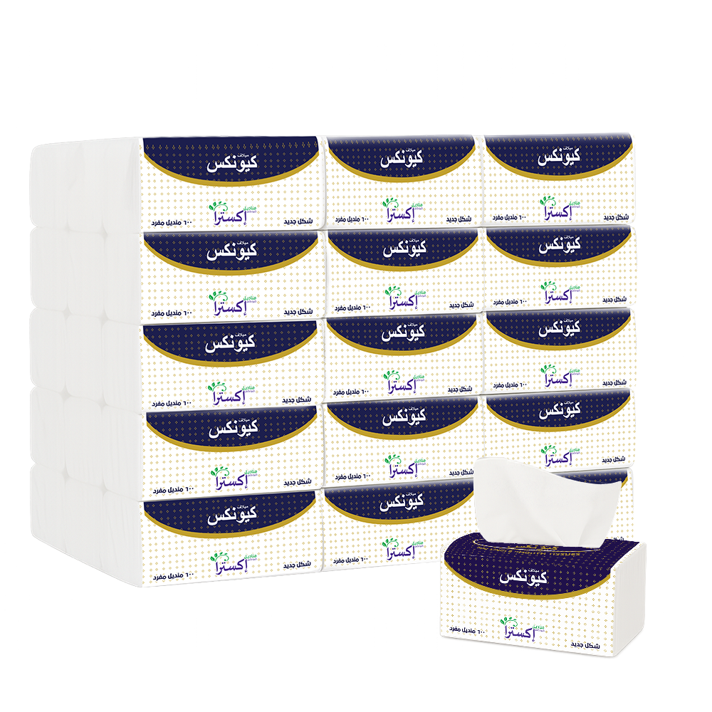 احصل على عبوة اقتصادية وعملية من مناديل كيونكس الفاخرة، تحتوي على 32 علبة كبيرة، كل علبة تضم 600 منديل ناعم بثلاث طبقات، مثالية للاستخدام المنزلي أو المكتبي.